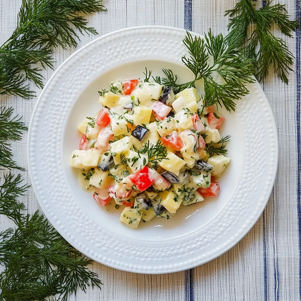 Во время и после советской эпохи, когда ингредиенты высокой кухни стали недоступны, рецепт радикально упростили. Дорогой рябчик уступил место варёной колбасе или курице, трюфели и икра исчезли, а ключевыми компонентами стали доступные и сытные овощи: варёные картофель и морковь, яйца, а также два главных «спасителя» салата: консервированный зелёный горошек и хрустящие маринованные огурцы. Этот адаптированный, народный вариант получил название «Салат Столичный», но в народе его по-прежнему называли по имени создателя — Оливье. Именно в таком виде салат стал негласным символом изобилия и обязательным атрибутом новогоднего застолья, знаменуя собой праздник и изобилие на столе.