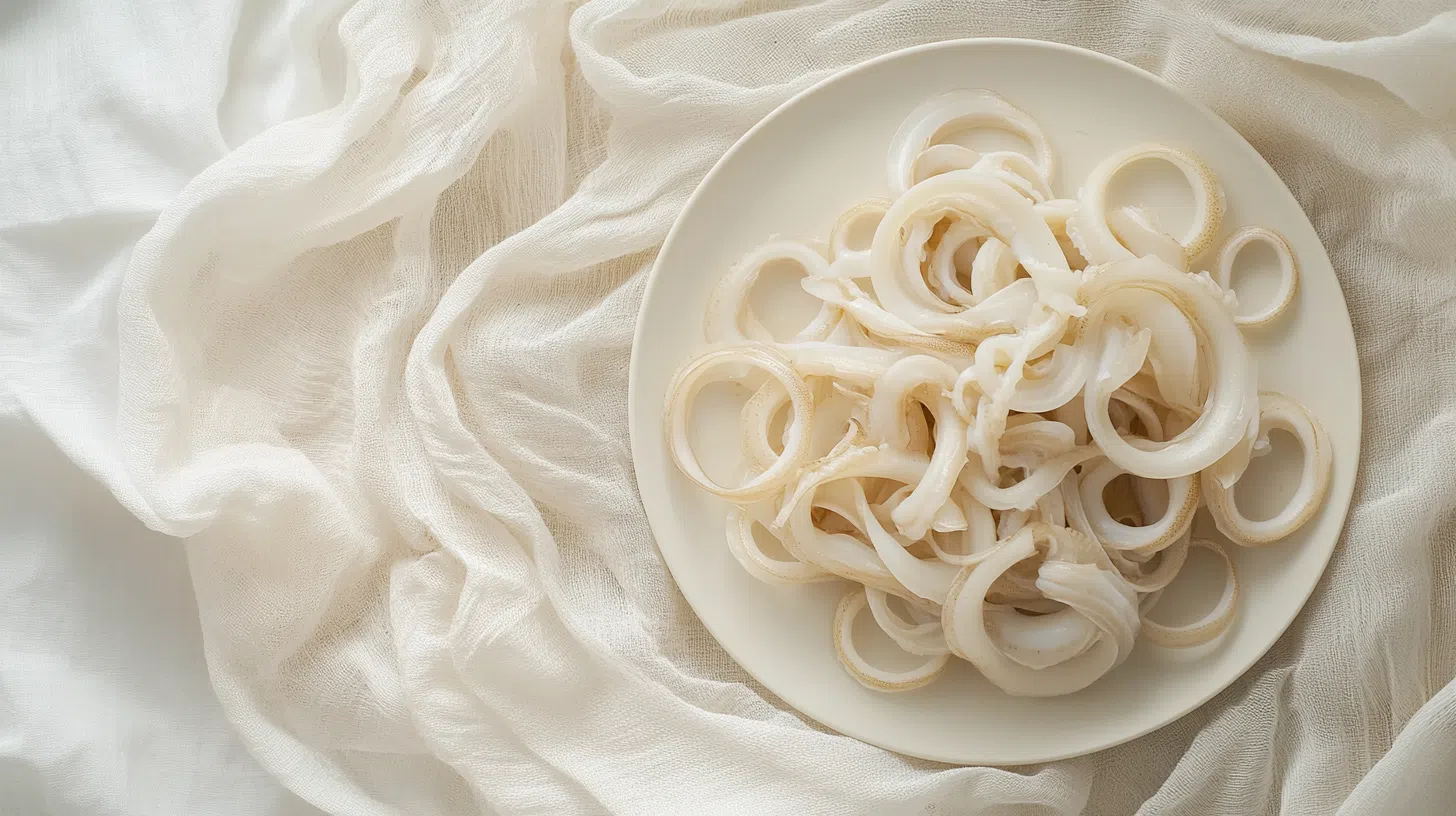 Плёнка на кальмаре состоит из двух слоёв: тонкой прозрачной внешней и более плотной розовой внутренней. Обе нужно удалить для идеального вкуса и текстуры.
