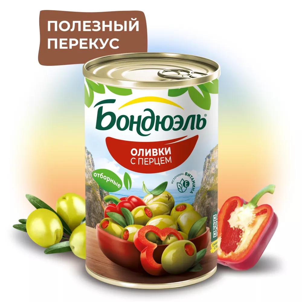 В самом южном регионе Испании – Андалусии – выращивают оливки крупного калибра сорта «мансанилья». Игру вкусов подчеркивает сладкий перец, наполняющий оливки нежным и запоминающимся оттенком. Оливки Бондюэль со сладким перцем станут хорошим аккомпанементом к праздничному столу!