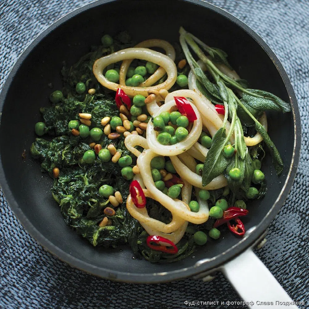 Тонкая стручковая фасоль с помидорами и маслинами в соевом соусе