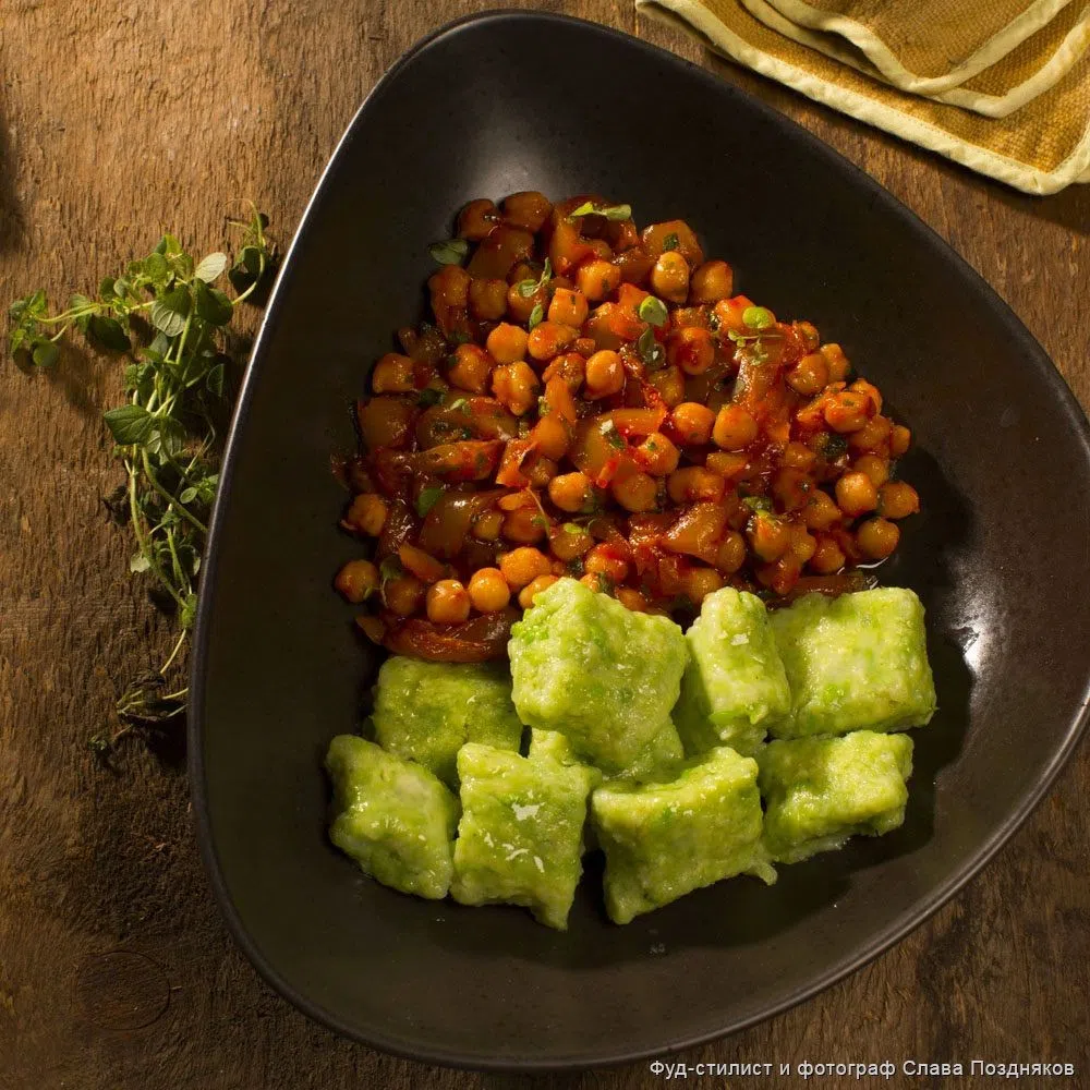 Ленивые вареники из пюре «Зеленое трио» с лечо и нутом