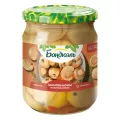 2.Грибы нарежьте ломтиками, добавьте рубленные орехи и шнитт-лук, влейте горчичное масло, все перемешайте и дайте промариноваться 5 минут.